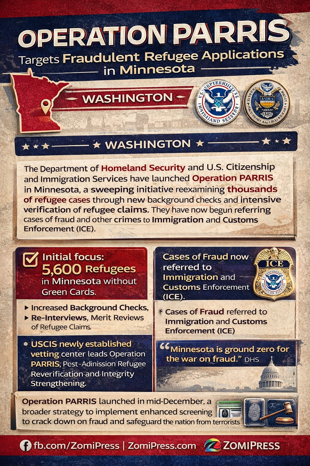 The U.S. Department of Homeland Security (DHS) and U.S. Citizenship and Immigration Services (USCIS) have launched Operation PARRIS, a large-scale investigation into suspected refugee fraud cases in Minnesota.
