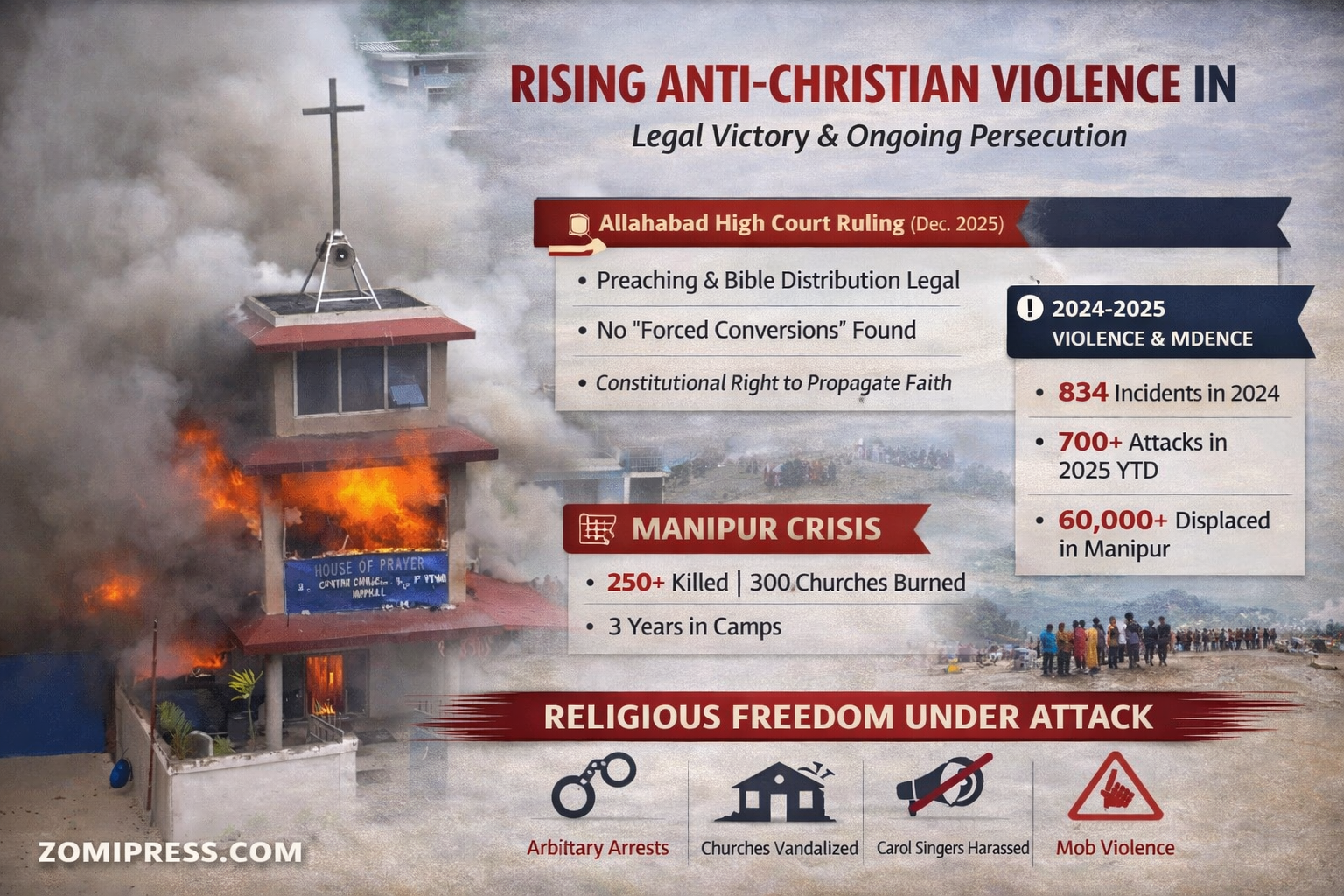 The Allahabad High Court’s December 2025 ruling underscores that India’s Constitution protects the peaceful propagation of faith. Yet this legal clarity has not stemmed the tide of violence. Rising attacks, particularly in Manipur, the Hindi belt, and the tribal Northeast, reveal a crisis that cannot be resolved through repression or vigilante justice.